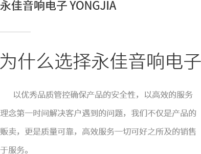 拉薩永佳音響電子有限公司 拉薩永佳音響電子有限公司坐落于美麗富饒的圣城拉薩,公司前身為拉薩昊成音響電子銷售有限公司,注冊資金為300萬元,成立于2010年3月公司地址位于西藏拉薩市貢布塘南側(cè)1號薩博廣場4-5、4-8號。拉薩永佳音響電子有限公司主營專業(yè)舞臺音響設(shè)備、會議音響系統(tǒng)設(shè)備、公共廣播音響系統(tǒng)設(shè)備、網(wǎng)絡(luò)及監(jiān)控設(shè)備、多媒體教學(xué)設(shè)備、多媒體投影機(jī)、幕布、弱電線材、辦公設(shè)備、LED液晶顯示屏品種齊全、服務(wù)效率、拉薩